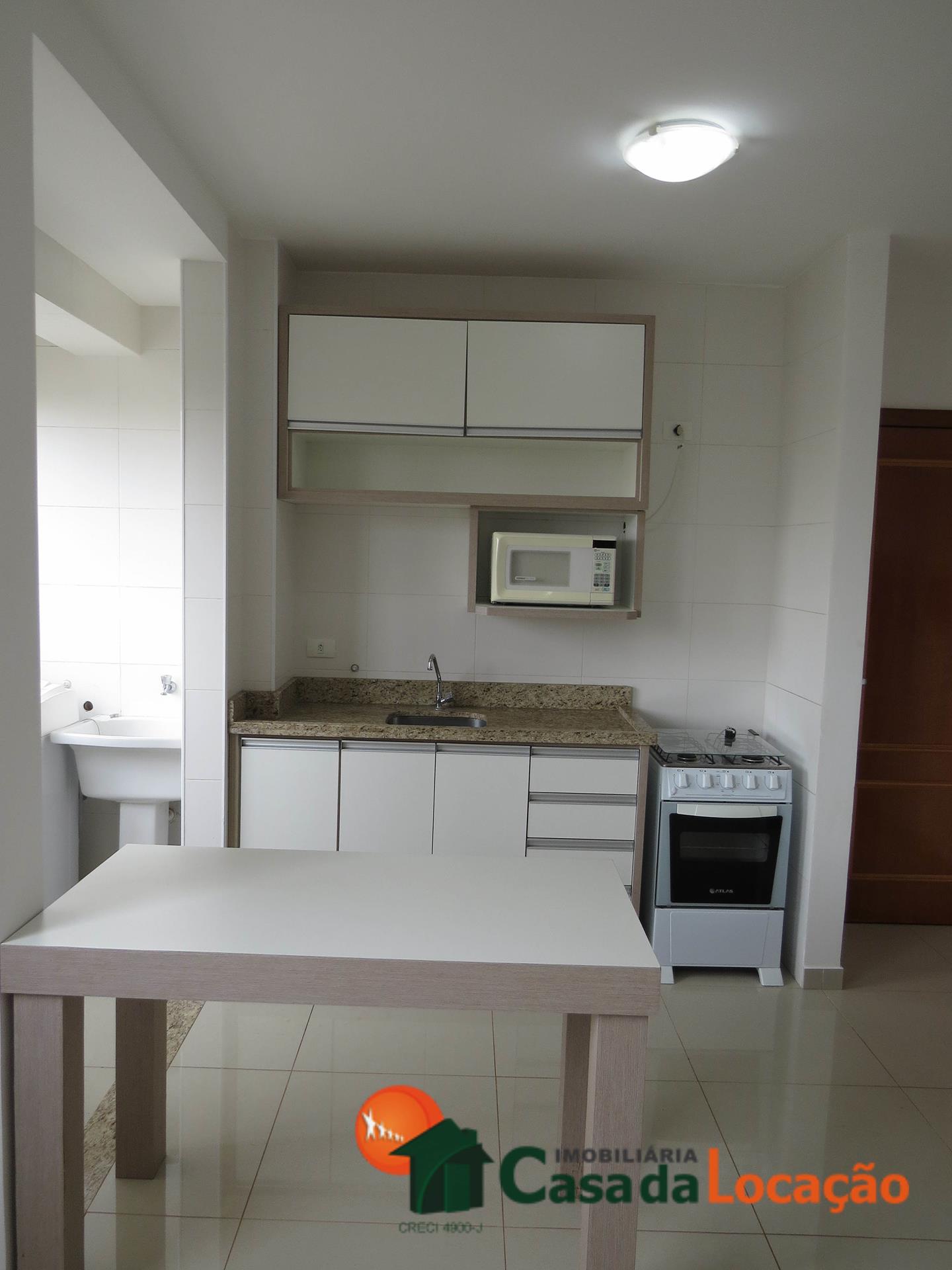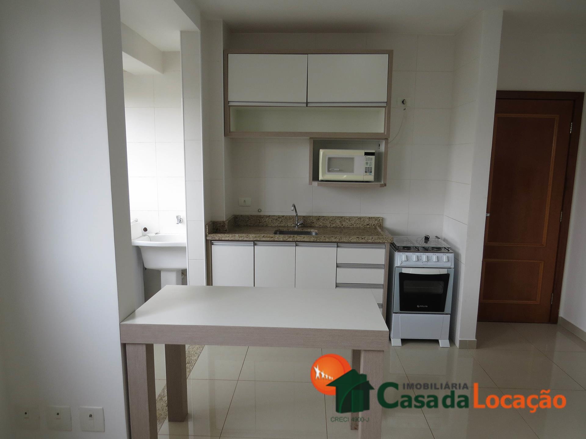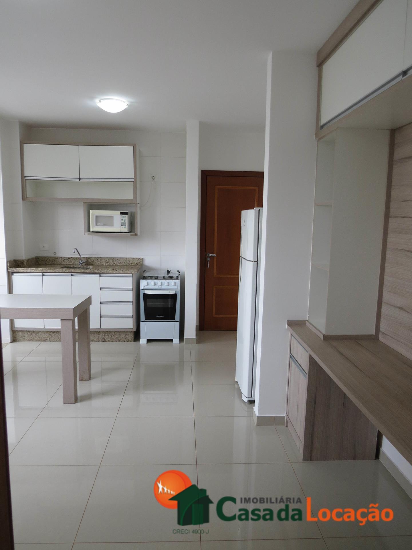 Apartamento semimobiliado com 1 Dormitório ( 1 Suíte Simples ), 1 Sala e Cozinha conjugada, 1 Área de Serviço, 1 BWC Suíte Simples. Com 1 vaga de garagem coberta.